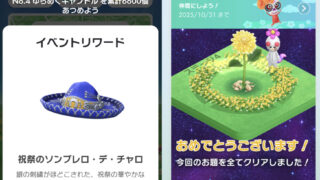 ピクミン 「祝祭のソンブレロ・デ・チャロ」をゲット!(還暦まであと269日) やっぱり「ソンブレロ」でした.ピクミンブルームの「ディア・デ・ムエルトス」イベント,4つめのリワードをゲットしました.前に「今月は何をもらえるんだろう」って一覧を眺めていたとき,「メキシカン・ハットもあるんだね」と妻に話したら,「ソンブレロ... 2025.10.12 ピクミン