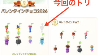 「バレンタインチョコ2026」デコピクミンの仲間を増やすため,今日もせっせと「ラッピングリボン」を集めています.コンプリートまで,ついにあと1種となりました.イベント開始から4日目でリーチがかかるのは,早い方だと思います.2月は,上々の滑り...