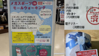 3月に入って最初の5のつく日です.メガスポーツとイオンモールが行なっているモールウォーキングイベントの実施方法がリニューアルされると,先月から告知されていました.アプリを開いてモール内を1,000歩以上歩くという距離の条件はこれまで通りです...