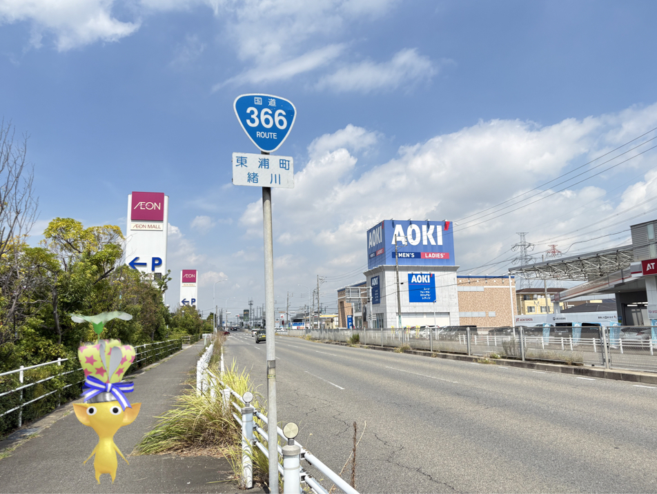 イオンモール東浦の前を通る「国道366号」は,わが街のメイン道路です.