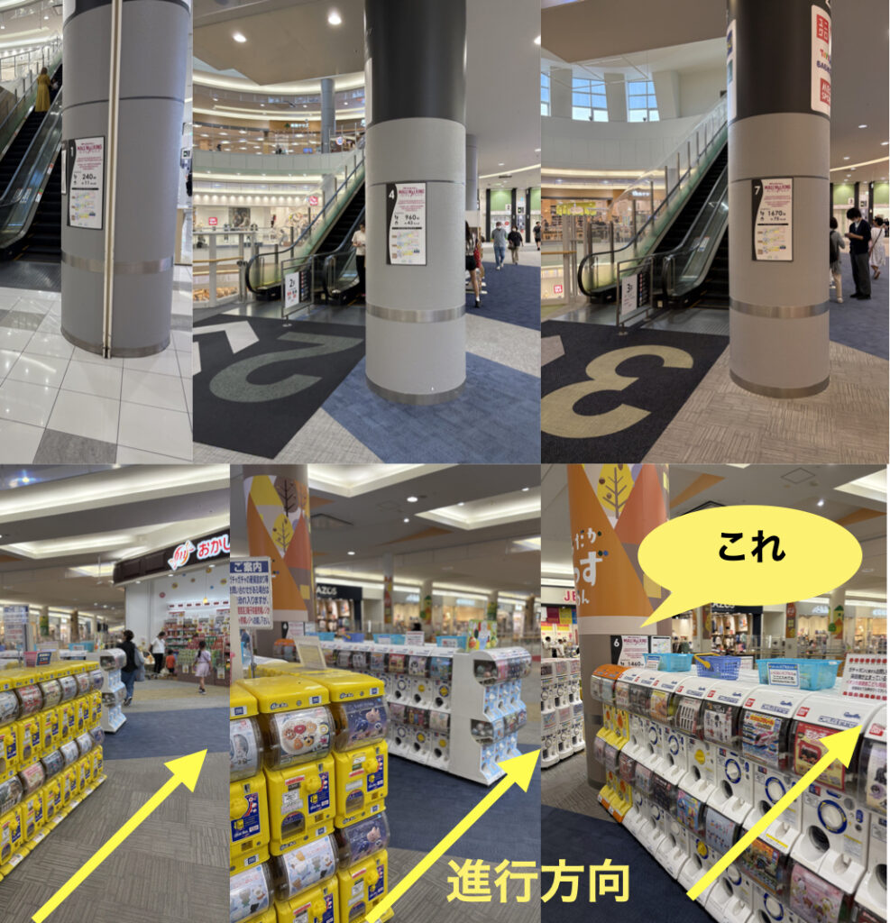 実際の6番標識は,進行方向の左手,真横の位置にあって,しかもコースから少し離れたガチャガチャの影.