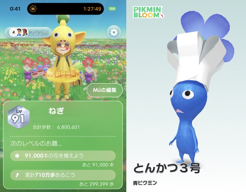 一方,我が家のトップを走る次男は1,100万歩も歩いてるのにまだLv98のまま.