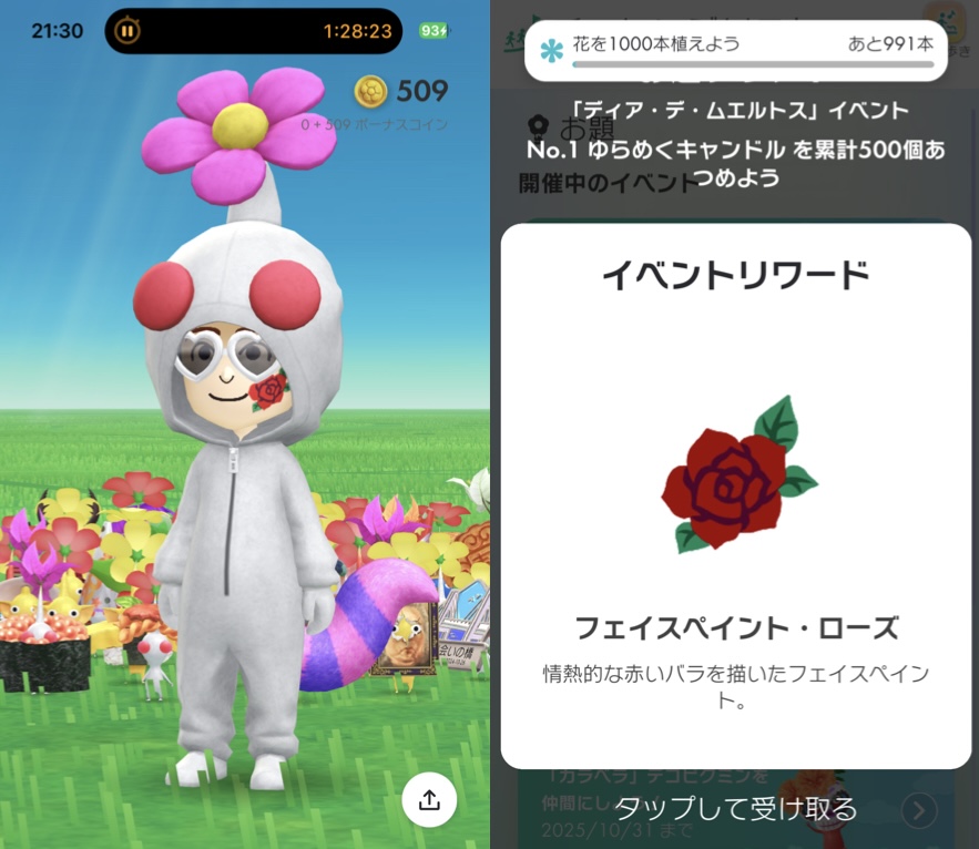 今月はせっせと「ゆらめくキャンドル」を集めて,「カラベラ」デコピクミンを仲間にしていきます.