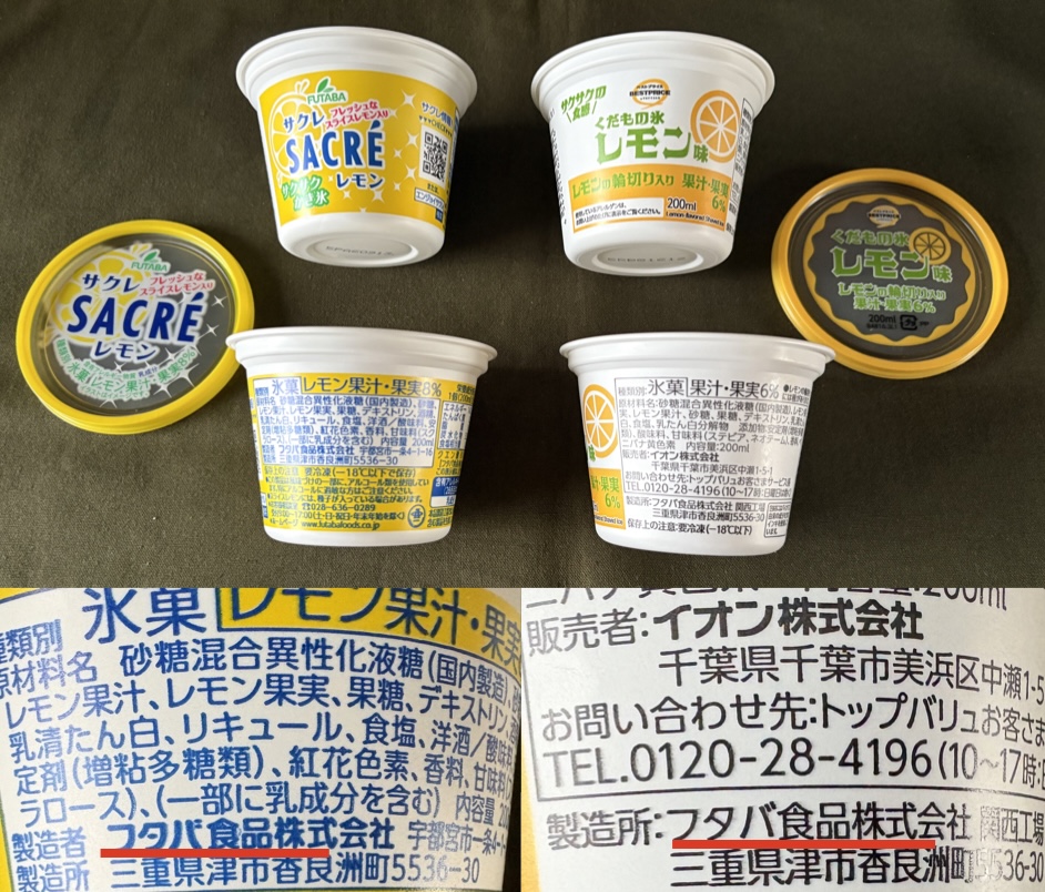 販売者はイオン株式会社になっているけど,工場は三重県津市で同じ.つまり同じラインから出荷されてるわけです.