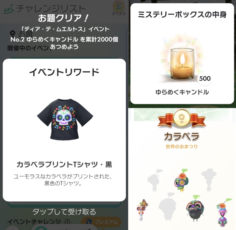 「ディア・デ・ムエルトス」イベントの2つめのリワード,カラベラプリントTシャツ・黒をゲットしました.
