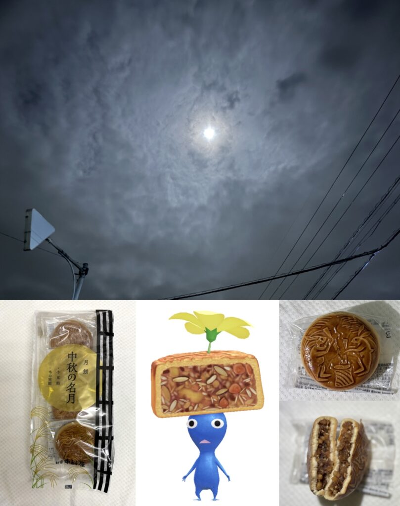 仕方ないので,新宿中村屋で買っておいた「月餅」で月見気分を味わうことに.