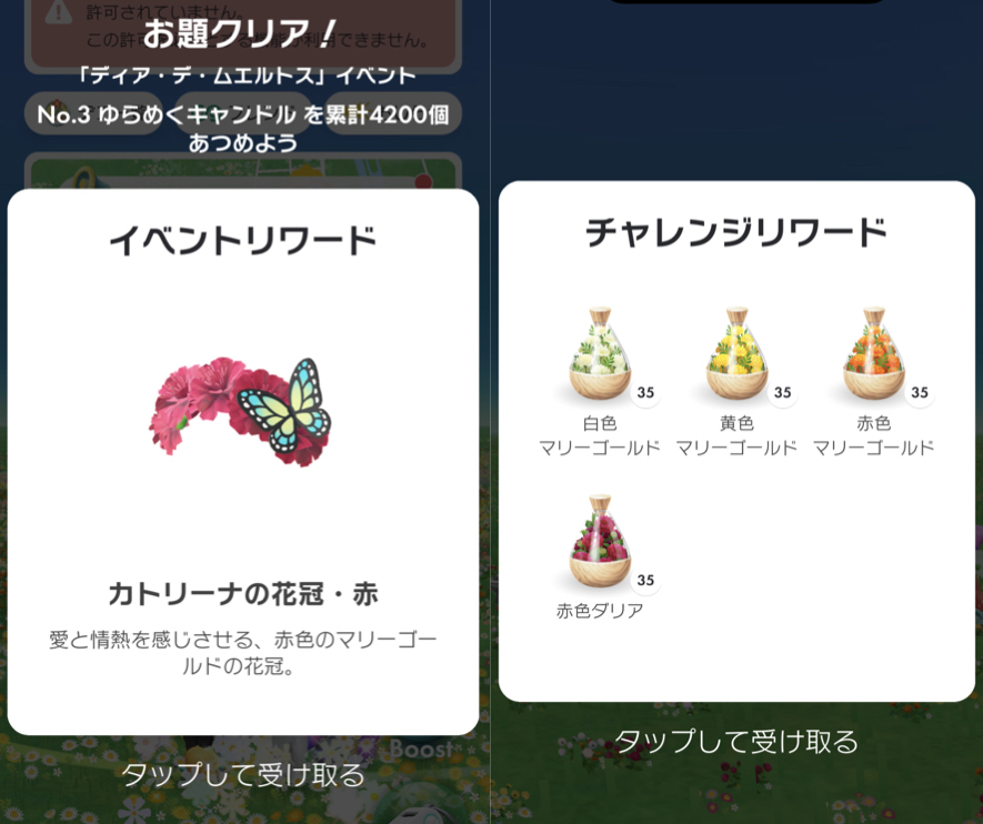 今月の「ディア・デ・ムエルトス」イベント,3番目のリワード「カトリーナの花冠・赤」をゲットしました.