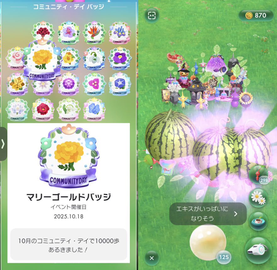 そういえば,コミュニティ・ディのバッジは2024年春にピクミンブルームを始めてから,一度も途切れずそろっています.