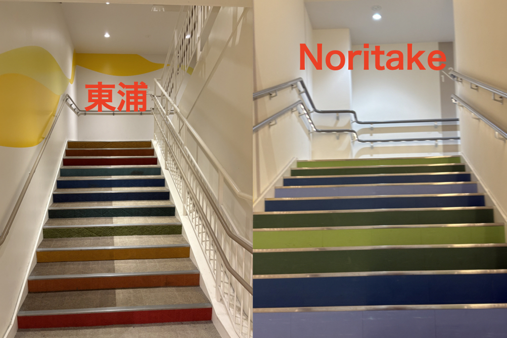 東浦の階段は,黄色を基調とした明るい通路でテンションが上がります.