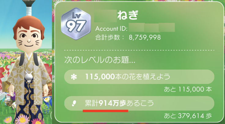 Lv97 累計歩数:8,761,375歩