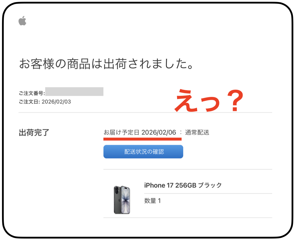 もともと今回注文したiPhone17は,2/21から使用したかったものです.