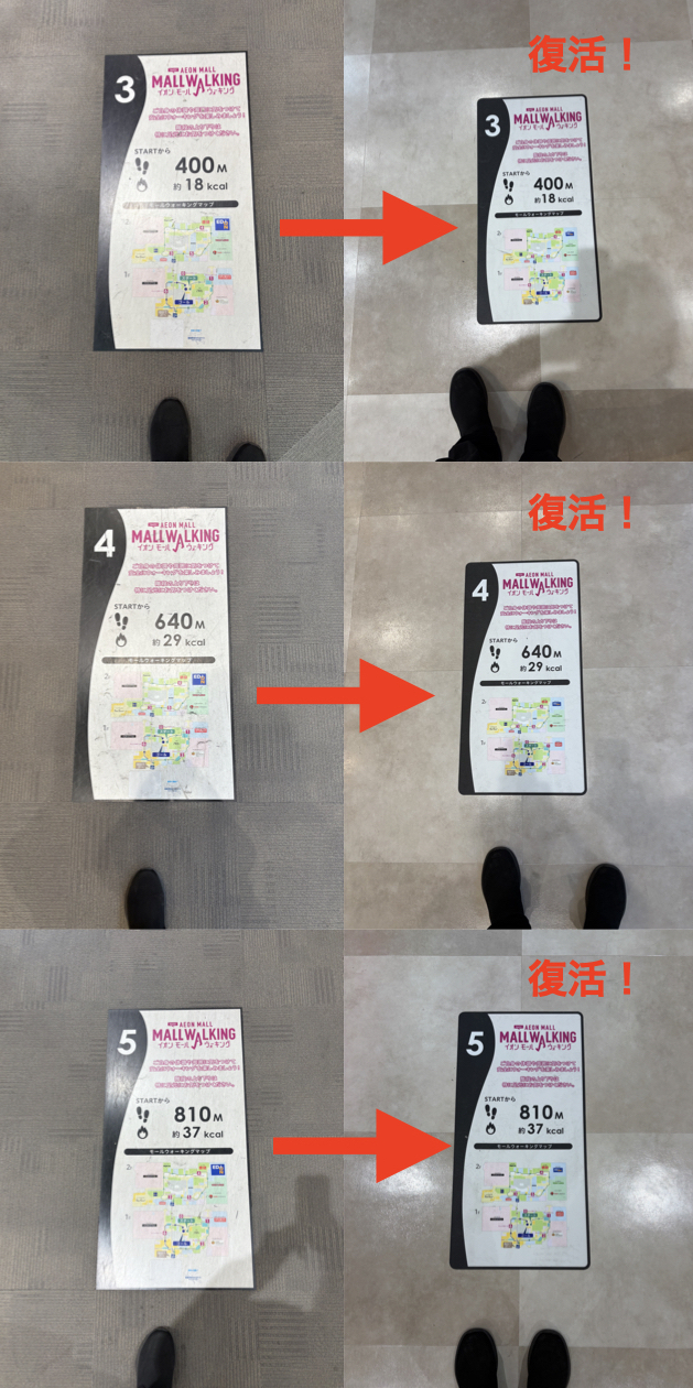 その影響で,ウォーキングの案内標識3~5番が
