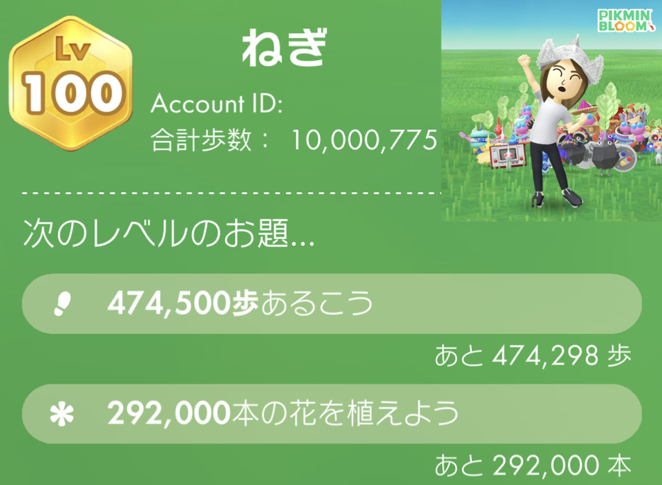Lv100 累計歩数:10,000,775歩