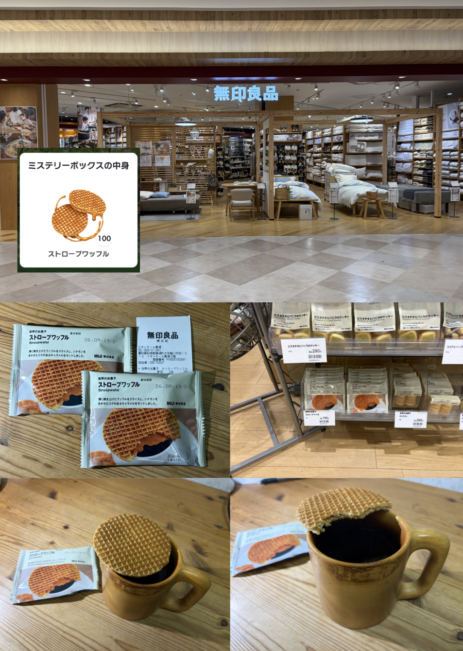 無印のストロープワッフルを開封し,そっとコーヒーカップの上におきます.