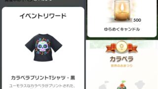 ピクミン 「カラベラプリントTシャツ・黒」&「ゆらめくキャンドル500」ゲット!(還暦まであと277日) 「ディア・デ・ムエルトス」イベントの2つめのリワード,カラベラプリントTシャツ・黒をゲットしました.胸には派手なカラベラ(頭蓋骨)がプリントされています.リアルでもらったら街で着るかは微妙ですが,ピクミンブルームの世界のMiiなら問題なし(... 2025.10.04 ピクミン